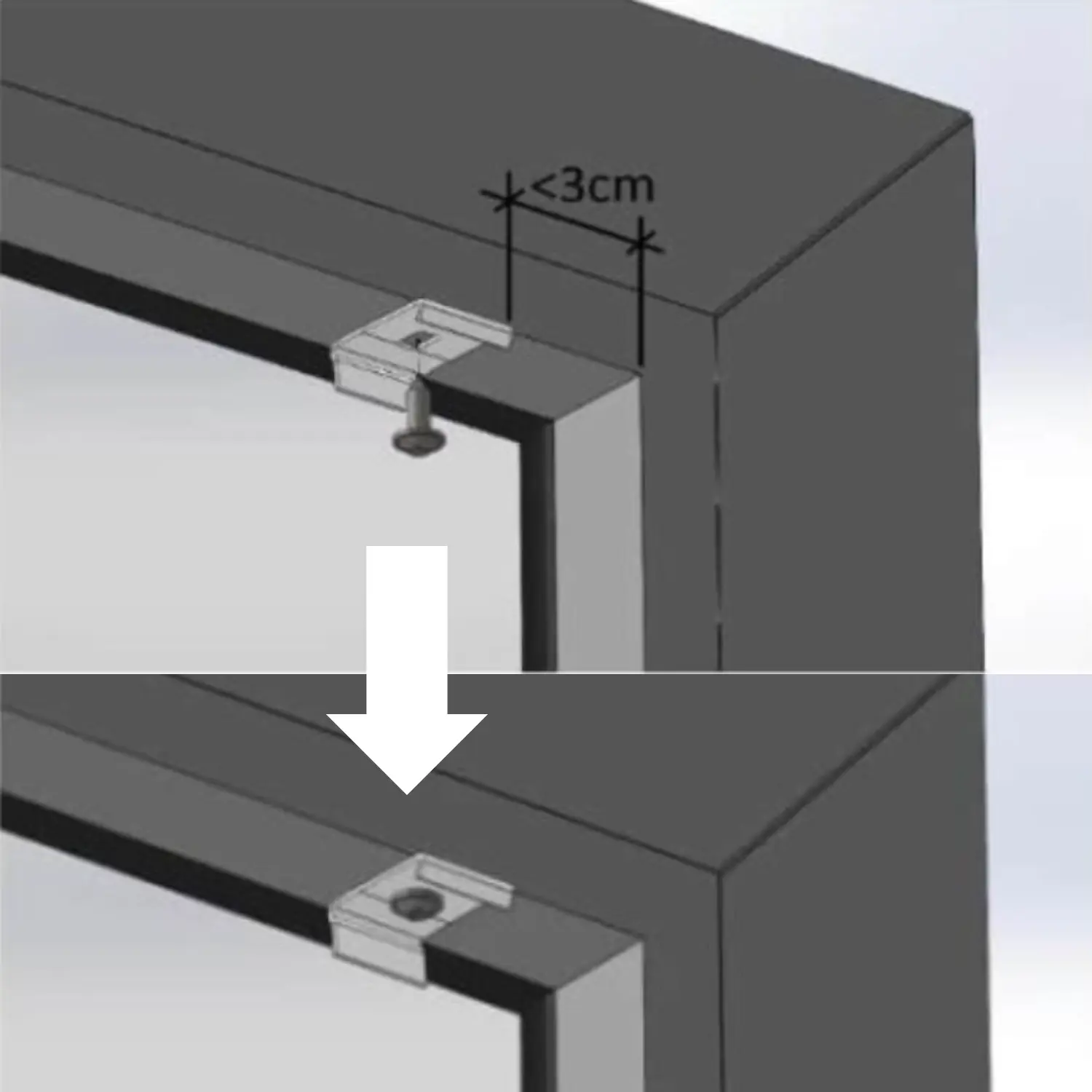 1. SOLIS. Piestipriniet komplektā iekļautos montāžas klipšus ar skrūvēm, novietojot tos vismaz 30 mm attālumā no loga rāmja malas.
