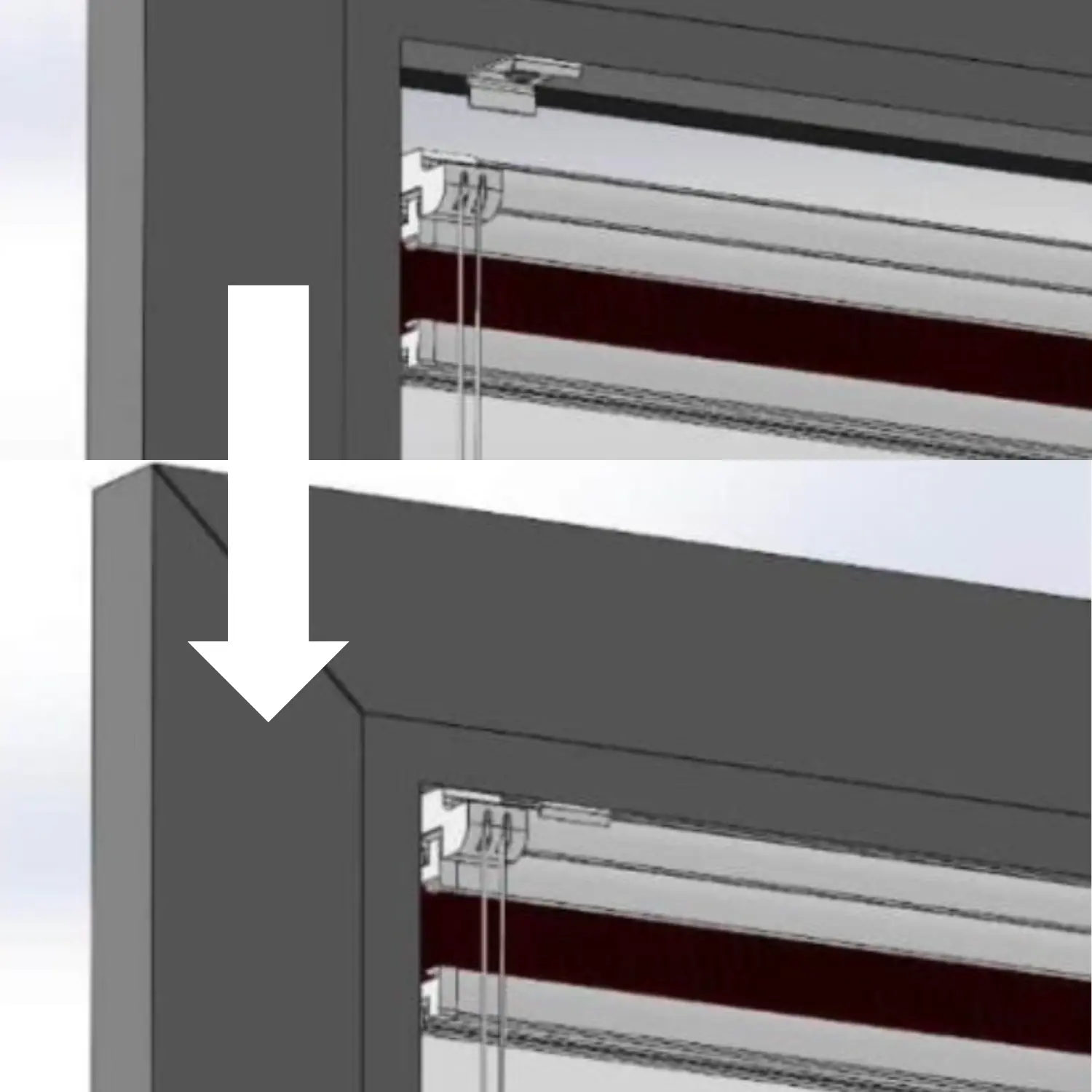 2. SOLIS. Ieslidiniet plisētās žalūzijas augšējo profilu montāžas klipšos.